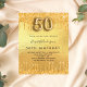 A modern, stylish and glamourous invitation for a 50th birthday party. A faux gold metallic looking background with faux glitter drips, paint dripping look. The name is written with a modern hand lettered style script. Personalise and add your party details. Number 50 is written with a balloon style font, script.