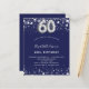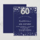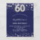 A modern, stylish and glamourous invitation for a 60th birthday party. A navy blue background, decorated with faux silver stars. Personalise and add your name and party details. Number 60 is written with a balloon style font.