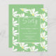 Budget 60th birthday invitation with white floral daisy pattern. Get ready for the party with this trendy floral watercolor summer pattern. Easy to change the text. Modern green background front and back.