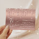 Elegant, chic and budget-friendly 70th birthday party invitation featuring "70 & Fabulous" written in stylish white script against a rose gold background, with rose gold faux glitter dripping down. You can personalise with her name and the seventieth birthday party details.