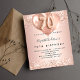 For an elegant 70th birthday. A rose gold faux metallic looking background. Decorated with rose gold, pink faux glitte, sparkles and balloons. Personalise and add a name, and party details. The name is written with a hand lettered style script, number 70 with balloon style fonts.