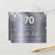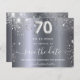 An elegant Save the Date card for a 70th birthday party. A modern faux silver metallic looking background, decorated with faux glitter dust. Personalise and add a date and name/age. The text: Save the Date is written with a large trendy hand lettered style script. Number 70 with a balloon style font.