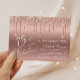 Elegant, chic and budget-friendly 75th birthday party invitation featuring "75 & Fabulous" in a stylish white script against a rose gold background with drips of rose gold faux glitter.
