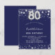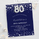 Budget 80th birthday navy blue silver invitation
