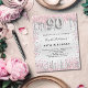 A modern, stylish and glamorous invitation for a 90th birthday party. A faux silver looking background, decorated with pink and faux silver glitter dust. Personalize and add your name nad party details. Number 90 is written with a balloon style font, script.