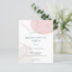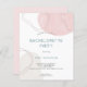 A budget price SMALLER 4.5” x 5.6” alternative. Available in a SEMI-GLOSS 110 lb CARD STOCK which is the default option (thicker for invitations), OR a SATIN FINISH 80 lb THINNER PAPER STOCK (ideal for enclosures). Envelopes are an optional extra and are slightly larger than the card size. Modern abstract shapes and lines in pretty pastel pink and cream with wavy lines decorate the top right and bottom left corners, and stylish minimalist typography is in the middle which is easily personalised to the details of your Bachelorette Party. You can change the background colours on both sides, as well as the text to a different colour if you so wish via the Click to Customise Further option.