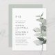Budget All in One Eucalyptus QR Code RSVP Sage Wedding Invitation.. Our affordable simple botanical wedding invitation features an elegant watercolor eucalyptus branch in shades of sage and dusty green setting off the invitation text beside it. The light sage back of the invitation also displays your wedding website QR code as well as the website's URL itself allowing your invitees to easily RSVP online and view all of the details normally sent in a wedding packet. This modern style wedding invitation was designed to be both elegant and budget conscious... not to mention time-saving. All example text can be easily revised with your own information on the personalisation template. This all in one QR code RSVP design is also available on a traditional 5x7 wedding invitation card.
