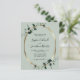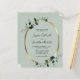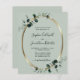 Budget Eucalyptus All in One QR Code RSVP Gold Metallic Sage Wedding Invitation... Our "All in One" luxe botanical wedding invitation features a gold metallic oval frame embellished with emerald-hued eucalyptus leaves over a light sage green background. The sage back of the invitation also displays your wedding website QR code as well as the website's URL itself allowing your invitees to easily RSVP online and view all of the details normally sent in a wedding packet. This modern style wedding invitation was designed to be both elegant and budget conscious... not to mention time-saving. All example text can be easily revised with your own information on the personalisation template. PLEASE NOTE: Budget cards do not automatically come with envelopes, as do the traditional invitation cards, but you can purchase them on the same page at checkout if you wish. This all in one QR code RSVP design is also available on a traditional 5x7 wedding invitation card.