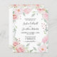 Budget All in One Pink Roses Sage Greenery Wedding Invitation... Our budget "All in One" floral wedding invitation features an array of pastel pink roses and leafy sage greenery framing your invitation text on front of the card. The back of the card, bordered with pink roses on top and bottom, contains all of the details you would typically see on separate cards in the wedding packet. This modern style wedding invitation was designed to be both elegant and budget conscious... not to mention time-saving. On the back there is also a QR code graphic template you can replace with your own code (or delete if you don't plan to use one). All example text can be easily revised with your own information on the personalisation template. PLEASE NOTE: "Budget" card paper is not the same as the traditional flat card invitations. Our budget cards are 4.5 x 5.6 inches made of semi-gloss 110 lb paper compared to traditional wedding invitation flat cards at 5 x 7 inches in matte paper at 120 lb weight. Also, the budget cards do not automatically come with envelopes, as do the traditional invitation cards, but you can purchase them on the same page at checkout if you wish. This all in one design is also available on a traditional 5x7 wedding invitation card.