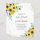 Budget All in One Sunflowers Bumble Bee Greenery Gold Glitter Wedding Invitation... Our unique "front and back" floral bee greenery wedding invitation features a colourful arrangement of yellow sunflowers, green foliage, gold glitter, and a watercolor bumble bee bordering your personalised wedding invitation text. The back of the invitation contains all of the details you would typically see on separate cards in the wedding packet. This modern style wedding invitation was designed to be both elegant and budget conscious... not to mention time-saving. On the back there is also a QR code graphic template you can replace with your own code (or delete if you don't plan to use one... ALSO - don't forget to delete the text that refers to the QR code information). All example text can be easily revised with your own information on the personalisation template.