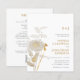 Budget All in One Vintage Flowers and Foliage Wedding Invitation... Our budget "All in One" classic vintage floral wedding invitation features a gold and antique white arrangement of flowers and foliage on a crisp white background next to your invitation text. The back of the card contains all of the details you would typically see on separate cards within the wedding packet. This modern style all-in-one wedding invitation was designed to be both elegant and budget conscious... not to mention time-saving. All example text can be easily revised with your own information on the personalisation template.