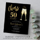 Modern faux gold trendy handwriting script cheers to 50 years low budget affordable black birthday party invitation PAPER FLYER with champagne glasses. +++++++++++ Easy to personalise with your details! +++++++ PLEASE READ THIS BEFORE PURCHASING! This is a budget card printed on a FLYER (advertising-type paper). ++++ Please note that BUDGET PAPER IS THIN - You can upgrade to have this card printed on cardstock ++++ ENVELOPES NOT INCLUDED. +++ Double-check all the information and spelling of your text because you will receive exactly what you see - no one else will check anything before printing. ++++ This card is designed for size 4.5" x 5.6". In the case you choose another size of the card and text goes outside page, everything needs to be fixed before adding the product to cart. Please ask Live Design Service for help.