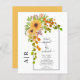 BUDGET Yellow watercolor sunflowers, arch and initials fall invitation for a budget wedding. This pretty wedding showcases an arch frame with yellow sunflowers, berries and leaves in autumn colours on the left corner and your initials. The names are in script typography. The back is of solid yellow colour.