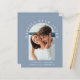 Modern budget-friendly all-in-one dusty blue wedding invitation featuring your photo in an arch and "Happily Ever After" in elegant white typography. Add your first names, wedding date and location. On the reverse side, personalise your invitation in simple white typography and input your wedding website address to create a scannable QR code for your guests to scan to RSVP online and obtain additional wedding details such as accommodations.