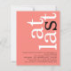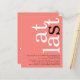 A value for money BUDGET alternative on a smaller size 4.5 x 5.6” semi-gloss 110lbs weight, which is of similar thickness to a postcard (however is not suitable to use as a postcard.). PLEASE NOTE there is ONE invite per sheet. BUDGET At Last QR Code Coral Rose Engagement Party Invitation. With QR code to your venue website on the back. A modern typographical design, with At Last in large typography rotated and to the right hand side at the top in white and black on a background of coral rose. Background colour can be changed on each side if you wish via Customise further. This version of the invitation is with parties in mind taking place in a hotel or restaurant (or any venue with a website), replace the QR code on the back with a QR code to their website. You can create QR codes for free online. Simply go to the web page you wish to create the code for, and using Chrome, right click and choose Create QR code and a download link with your code will immediately appear. Or simply search “QR code creator” and lots of options come up to create for free.. You can also delate the QR code and text on the back if not required via customise further.