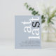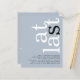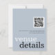 A value for money BUDGET alternative on a smaller size 4.5 x 5.6” semi-gloss 110lbs weight, which is of similar thickness to a postcard (however is not suitable to use as a postcard.). PLEASE NOTE there is ONE invite per sheet. At Last QR Code Dusty Blue Text Engagement Party Announcement and Invitation. A stylish typographical design, with At Last in large typography rotated and to the right hand side at the top, in white with black for the letter "s" on a background of pale dusty blue. The background colour can be changed on each side if you wish via Customise further. This version of the invitation is with parties in mind taking place in a hotel or restaurant (or any venue with a website), replace the QR code on the back with a QR code to their website to make it convenient for guests to find directions etc. You can create QR codes for free online. Search “QR code creator” and lots of options come up to create for free. You can also delete the QR code and text on the back if not required via customise further.