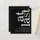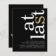 A value for money BUDGET alternative on a smaller size 4.5 x 5.6” semi-gloss 110lbs weight, which is of similar thickness to a postcard (however is not suitable to use as a postcard.). PLEASE NOTE there is ONE invite per sheet. At Last QR Code White Gold Black Engagement Party Announcement and Invitation. A stylish typographical design, with At Last in large typography rotated and to the right hand side at the top, in white with gold for the letter "s" on a background of black. The background color can be changed on each side if you wish via Customize further. This version of the invitation is with parties in mind taking place in a hotel or restaurant (or any venue with a website), replace the QR code on the back with a QR code to their website to make it convenient for guests to find directions etc. You can create QR codes for free online. Search “QR code creator” and lots of options come up to create for free. You can also delete the QR code and text on the back if not required via customize further.