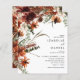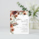 This natural stylish wedding invitations features watercolor terracotta and dark red rustic flowers, dry leaves and twigs. It is perfect invitation for autumn rustic and boho wedding. New autumn collection. Modern on trend design.