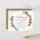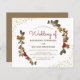 Invite your guests to celebrate your wedding day, with these elegant autumnal wedding invitations. Featuring a classic white background, with gold glitter in 2 of the corners, an array of autumnal coloured foliage designed frame around a stylish wedding template which is easy to customise.