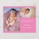 The design has 3 photo collage in the front with white calligraphy "Thank you" text and the name and birth details of the baby.