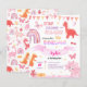 Cute Baby Girl Pink Dino Dinosaur Kids Birthday Invitation