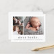 A sweet photo collage birth announcement featuring a simple modern name 3 photos on the front. The back has a large full name header and personal message from the family. Click the edit button to customise this design with your photos and details.