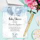For a baby shower, celebrating a baby boy. A chic white background. Decorated with blue faux glitter drips, paint dripping look, balloons and a cute little baby elephant boy. Personalise and add the name of the mum to-be's name and party details. The name and the text: Baby Shower are written with a hand lettered style script
