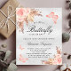 For a modern boho style baby shower. A faux silver looking background. Decorated with rose gold and pink florals, roses, pampas grass and butterflies. Personalise and add a name and party details.