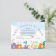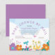 A budget price SMALLER 4.5” x 5.6” alternative. Available in a SEMI-GLOSS 110 lb CARD STOCK which is the default option (thicker for invitations), OR a SATIN FINISH 80 lb THINNER PAPER STOCK (ideal for enclosures). Envelopes are an optional extra and are slightly larger than the card size. In times when you can't be together, you can still help make the parents-to-be feel special by sending out Baby Shower by Mail invitations inviting their friends and family to shower them in a different way. This design has colourful florals and leaves running along the bottom edge with a blue sky and sweet birds, with curved text in an umbrella shape for the main header. Easily personalise the text to your own requirements. You can also change the font styles and colours if you wish via the customise further option, as well as the lilac background colour on the back.