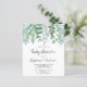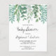 This stylish Budget Baby Shower Invitation is decorated with watercolor eucalyptus and greenery in shades of green.
