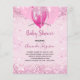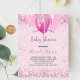 For a baby shower, celebrating a baby girl. A girly blush pink background. Decorated with faux glitter dust. Personalise and add the mum to-be's name and party details. The name and the text: Baby Shower are written with a hand lettered style script. Black and pink coloured letters.