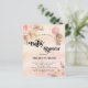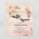 For a modern boho style baby shower. A rose gold, blush pink rustic faux metallic looking background. Decorated with rose gold and pink florals, roses, pampas grass and a teddy bear girl holding a pink balloon. Personalise and add a name and party details.