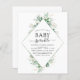 Budget Eucalyptus Greenery Botanical Watercolor and Faux Gold Foil Geometric Spring Baby Shower Sprinkle Invitations on white background - includes beautiful and elegant script typography with modern botanical leaves and greenery for the special Mother to Be celebration.