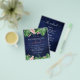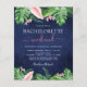 Budget Tropical Palms Floral Flowers Watercolor Navy Blue Bachelorette Weekend Itinerary Invitations - includes beautiful and elegant script typography with modern botanical blush pink flowers and tropical Hawaiian greenery for the special Bride to Be celebration.
