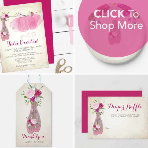 This listing is for a girls ballerina baby shower invitation professionally designed by Victoria of VG Invites. It is a charming high quality pink floral design with with a cute little tutu and ballet slippers with pink watercolor flowers on a vintage shabby chic background. Perfect for girl's baby shower. To see matching pink tutu excited little girl shower items from this theme and more baby shower themes for girls visit www.zazzle.com/vginvites