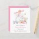 A budget price paper alternative. Envelopes are an optional extra. Whimsical style to invite your daughter's friends to her 4th birthday party, with this graceful blonde ballet dancer and bird, butterfly, balloons and pink and lilac florals. Easy to personalise the details to your own requirements. You can also change the text colours and pink background colour on the back if you wish via the Customise further option.
