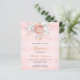 For an elegant baptism, celebrating a baby girl. A blush pink gradient metallic looking background. Decorated with rose gold and white florals, roses, faux silver glitter dust and a faux gold cross. Personalise and add the name of the child and details.