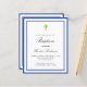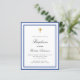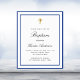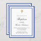 A modern, elegant and baptism invitation. A white background decorated with royal blue frames. Personalise and add a name and details. Black coloured letters.