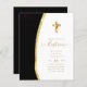 Great quality and value budget Baptism, Christening, First holy communion invitations featuring a holy gold cross. Text template fields both sides to add all your special event details for son or daughter.