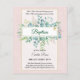 Watercolor green, sage coloured Rucalyptus leaves feature on this double sided Baptism, Christening, First Holy Communion invitation.