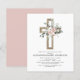 Daughter's Dusty Pink Rose and Sage Green Floral and Eucalyptus - Gold Foil Cross Botanical Greenery Watercolor Christian Religious Baptism Invitations.