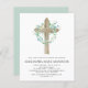Budget Sage Green Girl's Eucalyptus and Wooden Cross Botanical Greenery Watercolor Christian Religious Baptism Invitations.