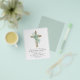 Budget Sage Green Boy's Eucalyptus and Wooden Cross Botanical Greenery Watercolor Christian Religious Baptism Invitations.