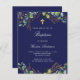 Budget baptism navy blue eucalyptus invitation