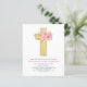 Budget Pastel Pink, Orange and Purple Spring Floral Flowers Cross Botanical Watercolor Christian Religious Baptism Invitations.