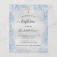 A modern, elegant baptism, celebrating a baby boy. Faux silver looking background decorated with blue faux glitter dust and a golden cross. Personalize and add a name and party details. Black colored letters.