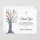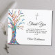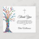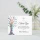 This Budget Baptism Thank You Card features a tree of life design in the colours of the rainbow and a cross.