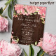 Rustic country style co-ed budget affordable baby shower backyard barbecue invitation on dark brown barn wood featuring big pink watercolor peony roses and strings of twinkle lights. +++++++++++++++ The invitation is suitable for outdoor garden backyard rustic country bbq baby girl shower parties. ++++++++++ PLEASE READ THIS BEFORE PURCHASING! This is a budget affordable wedding card printed on a paper sheet (each sheet has one card). ++++ For the best rapport price-quality, our advice is to choose the Semi-Gloss paper type (it is thick enough to be used for stationery) ++++ If you need envelopes, choose the ENVELOPE OPTION. +++ Double-check all the information and spelling of your text because you will receive exactly what you see - no one else will check anything before printing. ++++ This card is designed for size 4.5" x 5.6". In the case you choose another size of the card and text goes outside page, everything needs to be fixed before adding the product to cart. Please ask Live Design Service for help.