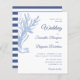 Create budget wedding invitations for coastal beach events with stylish blue and white design that is decorated with watercolor seaweed painting and modern typography, and the striped pattern on the backside. It's also a perfect idea for the under the sea theme wedding. The template helps to personalise it with ease - type your names, location, and place.