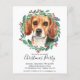 Invite friends and family to your Christmas or Holiday party with this elegant Christmas Beagle in a wreath design card, and matching decor. This beagle holiday card features a watercolor dog in a green and red wreath with holly and berries. Personalise with all your christmas party details . This beagle christmas invitation ill be a favourite among beagle lovers, dog lovers, and animal lovers. Visit our collection for matching beagle christmas cards, home decor, and gifts. COPYRIGHT © 2020 Judy Burrows, Black Dog Art - All Rights Reserved. Budget Beagle Dog Christmas Party Invitation